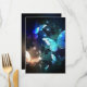 Fantastisch, leuchtend, blau und gelb, Nachtschmetterling auf dunklem Hintergrund.