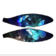 Fantastisch, leuchtend, blau und gelb, Nachtschmetterling auf dunklem Hintergrund.