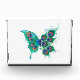 Schmetterling mit grünen Pfauenfedern Fotoblock