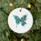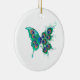 Schmetterling mit grünen Pfauenfedern Keramik Ornament