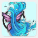 Origineller zeichn von Sandra Gale eines lila und schwarzen Schmetterlings, umgeben von Wellen mit blauen Gewässer. Kann eine Liebe des Wassers und der Wellen darstellen oder nur eine schöne Kombination von Natur. Großartiges Design für Kinder und Erwachsene.