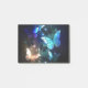 Fantastisch, leuchtend, blau und gelb, Nachtschmetterling auf dunklem Hintergrund.