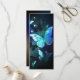 Fantastisch, leuchtend, blau und gelb, Nachtschmetterling auf dunklem Hintergrund.