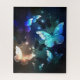 Fantastisch, leuchtend, blau und gelb, Nachtschmetterling auf dunklem Hintergrund.