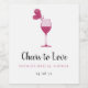 Dieses elegante Brautparty-Weinlabel besticht durch einen rosa Schmetterling, der am Rand eines Weinglases sitzt, und die handgezeichnete Schrift "Cheers to Liebe". Persönliche Gestaltung der Weinflaschen mit dem Namen des Brautums und des Duschdatums. Eine großartige Wahl für die Brautpartys im Weinkeller.