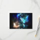 Fantastisch, leuchtend, blau und gelb, Nachtschmetterling auf dunklem Hintergrund.