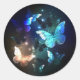Fantastisch, leuchtend, blau und gelb, Nachtschmetterling auf dunklem Hintergrund.