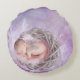 "Baby mit Flügeln" runder Kissen in lila, aus Polyester.