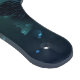 Fantastisch, leuchtend, blau und gelb, Nachtschmetterling auf dunklem Hintergrund.