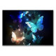 Fantastisch, leuchtend, blau und gelb, Nachtschmetterling auf dunklem Hintergrund.