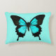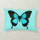 Akzentkissen im Schmetterlingsmuster eines Fracks - türkisblau und schwarz - digitales Foto in schwarz und sanft türkisfarben auf Aquarellhintergrund