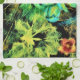 Blume, ein Schmetterling und Blätter leuchten in diesem farbenfrohen Bild, das digital verändert wurde.