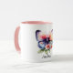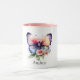Ein hübsches, mehrfarbiges Schmetterlingsdesign mit rosa und hellen Korallenwinden und grünen Blätter.