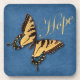 Dieses Set von 6 Untersetzer aus Kork hat ein blaues Imitat mit einem Scrollhintergrund mit einem großen blauen, orangefarbenen, bräunlichen und braunen Schmetterling auf dem das Wort Hope in einem eleganten kursiven Schriftart.