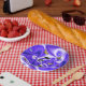 Schmetterling und Perlen auf lila Seide, Digitalkunst von Krisi ArtKSZP