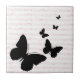 Ein leicht bedrückter rosa Notenhintergrund (Notenblatt) mit anschließenden Schmetterlingslieder-Silhouetten macht dieses Design so, als würden die Schmetterlinge zauberhaft in die Musik flattern. Die Keramik Kachel kann sowohl als Untersetzer oder Trivet als auch als Akzent Kachel für Wohngestaltung verwendet werden. Fügen Sie etwas Einzigartigkeit in Ihre Küche oder Badezimmerfliesen!