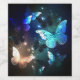 Fantastisch, leuchtend, blau und gelb, Nachtschmetterling auf dunklem Hintergrund.