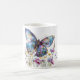 Die Tasse des Kaffees wird in einem hübschen Schmetterling und Wildblumen gedruckt. Personalisieren Sie dieses Element, und ändern Sie den Beispielnamen mit der Vorlage. Wählen Sie eine andere Tasse oder kaufen Sie, wie es ist.