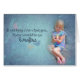 Kleines Mädchen, das einen Schmetterling mit Zitat hält.