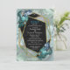 Die Natur erweckt Leben in der neuen Sammlung Butterfly of Paradise. Tropische Splash in Blues, türkis und blau-grün Blätter auf einem strukturierten schwarzen Muster mit bunten Schmetterlingen. Designs mit geometrischem Goldrahmen zum Thema Hochzeitsfeier oder als Dekordesign