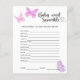 Lila Lila und rosa Butterfly Küsse und Baby wünscht Baby Dusche Party. Butterfly Babyduschkarten für ein Mädchen. Matching-Elemente verfügbar. Antworten: KREISE, KREUZEN, SCHNULLER, FLASCHE, NACHTLICHT, LULLABY, STROLLER, EPIDURAL, BURP, HOCHSTUHL, DIAPER BAG, SCHWIMMBAD