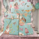 Aquarellfarben bemalt, die Blätter in der Verpackung von Kindern in leuchtend pastellfarbenen Hintergründen mit einem Märchengarten mit geflügelten Feen, Gnomen, Fröschen, Schnecken, Schmetterlingen und Pilzen.