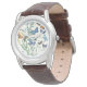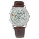 Schmetterlinge auf einer Uhr mit klassischen römischen Zahlen. Farbenfrohe Schmetterlinge auf der Armbanduhr eines Mannes.
