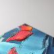 Dieses lebendige abstrakte Kunstwerk fängt einen Moment der Bewegung und Verwandlung ein, in dem Schmetterlinge scheinbar mühelos über eine reich strukturierte Oberfläche schweben. Kühne Pinselstriche in tiefem Blau und Türkis schaffen einen fließenden, fast ozeanähnlichen Hintergrund, während Ausbrüche von Rot, Orange, Gelb und sanftem Creme Schmetterlingssilhouetten im Flug bilden. Die dicke, malerische Textur verleiht der Komposition Tiefe und Energie und lässt sie lebendig und ständig in Bewegung erscheinen.