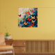 Dieses lebendige abstrakte Kunstwerk fängt einen Moment der Bewegung und Verwandlung ein, in dem Schmetterlinge scheinbar mühelos über eine reich strukturierte Oberfläche schweben. Kühne Pinselstriche in tiefem Blau und Türkis schaffen einen fließenden, fast ozeanähnlichen Hintergrund, während Ausbrüche von Rot, Orange, Gelb und sanftem Creme Schmetterlingssilhouetten im Flug bilden. Die dicke, malerische Textur verleiht der Komposition Tiefe und Energie und lässt sie lebendig und ständig in Bewegung erscheinen.