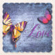 Schmetterlinge und Liebe-Text auf blauem Texturhintergrund mit kalligrafischem Kunstwerk.