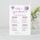Die "Butterflies Lilac What's On Your Phone" Game Card, eine skurrile Ergänzung zu Ihrer Brautbabydusche oder Ihrem Junggeselinnen-Abschied. Dieses interaktive Spiel mit charmanten lila Schmetterlappen und Motiven der Blume lädt die Gäste zu einer unterhaltsamen und modernen Aktivität ein. Machen Sie sich mit dieser Spielkarte zum Lachen und zum Aufregen bereit, denn die Gäste zeigen auf, was auf ihrem Handy läuft!