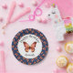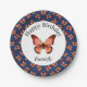 Diese personalisierte Geburtstagsfeierplatte ist mit hübschen grafischen Schmetterlingen in Orange-, Rosa- und Schwarztönen geschmückt.