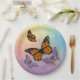 Schöne Schmetterlinge auf einem bunten Hintergrund.  Bringen Sie diesen Teller mit Papierservietten mit einem ähnlichen Entwurf für koordinierte Platzeinstellungen an Ihrem folgenden Party oder an Ereignis zusammen.