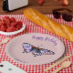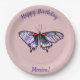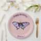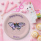 Lila und rote Schmetterlingskunst zeichnend Teller für Farbpapier im Hintergrund.