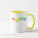 Einfache Illustration einer Gruppe von vier verschiedenen farbigen Schmetterlingen, die in Folge fliegen. Bild verfügbar auf verschiedenen Geschenken und Produkten.