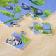 Schmetterlinge und Heidelbeeren fordern das Rätsel heraus. Der Hintergrund ist blau und die Schmetterlinge sind weiß. Dank Creative Fabrica für einige der Elemente in der Gestaltung.