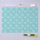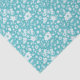 Weiße Blumenmuster mit Schmetterlingen auf türkisfarbenem Hintergrund.