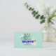 Ein Zitat über Magie, das besagt: Wer nicht an Magie glaubt, wird es nie finden. Set auf einem abstrakten Hintergrund mit Kreisen und Wirblen Formen. Die Farbe ist angenehm, pastellgrün, türkis und gelb. Ein paar orangefarbene und gelbe Schmetterlinge umkreisen zarte Blüten mit grünen Blätter und braunen Ästen. Hat ein unschuldiges magisches Gefühl. Passen Sie Ihre persönlichen Daten / Geschäftsdetails auf der Rückseite an.