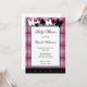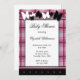 Baby Duwer Einladungen mit einem rosa karierten Design, das die Einladung mit einem schwarz-weiß Schmetterling illustriert Thema.