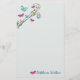 Dieses hübsche Briefpapier hat meinen Entwurf einer musikalischen Kerbe mit einer Gruppe bunten Schmetterlingen in Lila, in rosa, in Blauem, in Grünem und in Gelbem. Die Partitur wird mit in einer Liste verzeichneten Enden für einen künstlerischen Effekt gekurvt. Sie können den Namen an der Unterseite ändern oder unterschiedlichen Text benutzen oder ihn löschen, wenn Sie gerade den grafischen Entwurf wollen.