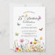 Eine elegante Einladung zum Geburtstag mit bunten Wildblumen und Schmetterlingen! Sie können diese Einladung mit Ihren eigenen Daten personalisieren.