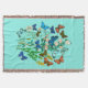 Werfen Sie Blanket in einer Vintagen botanischen Abbildung mehrfarbiger Schmetterlinge, auf einer Wiese mit Klee, auf einem himmelblauen Hintergrund