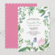 Verstell- lädt üppiges Grün der Schmetterlings-Brautpartyeinladungs-Eigenschaften und hübsche rosa Rosen ein, das Ihre Partysonderkommandos gestaltet. Eine höfliche grüne Farbe schmückt die Rückseite Ihrer Einladung. Eine rustikale dennoch hoch entwickelte Wahl für Frühlings-, Sommer-, Fall- und Winter-Babypartys. Entworfen durch Victoria. Zu mehr Besuch www.zazzle.com/vginvites sehen