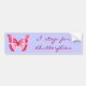 Grafisches Bild eines rosa Schmetterlinges auf weichem violettem Hintergrund. Benennung: ICH STOPPE FÜR SCHMETTERLINGE.