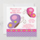 Laden Sie Gäste zu einem Geburtstags-Party mit dieser niedlichen rosa und lila Schmetterlingseinladung ein. Koordinierenaufkleber, Briefmarken und danken Ihnen kardiert auch verfügbares. Dank Etsys Belens Marindale für Grafiken.