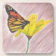 Untersetzer mit einem Monarch-Schmetterling, der auf einer gelben Blume stillsteht. Ein großes Geschenk für jemand, das gerade heraus umzieht oder nach etwas neu und unterschiedlich sucht, um in Ihrem Zuhause zu haben.