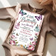 Feiern Sie die Ankunft Ihres kleinen Schmetterlings mit dieser charmanten Einladung zur Babyparty! Mit zarten Aquarellblüten, flatternden pastellfarbenen Schmetterlingen und verspielter Schriftart fängt dieses Design die Schönheit und Freude neuer Anfänge perfekt ein. Ideal für eine Frühlings-, Blumen- oder Garten-Themen-Babyparty, verleiht es Ihrer Feier eine weiche und feminine Note. Personalisieren Sie alle Details, um es einzigartig zu machen!