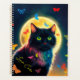 Eine schwarze Katze im Hintergrund des Mondes, umgeben von Wildblumen und Schmetterlingen, ein Zauber- und ruhiges Ambiente in lebhaften Farben. (BITTE! - Weitere Informationen finden Sie in anderen neuen Sammlungen.