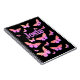 Schöne rosa Schmetterlinge flattern um dieses lebendige Design in rosa und lila Farbtönen. Einzigartige, moderne Illustrationen zur Wildnis. Personalisieren Sie dieses trendige Pop-Grafiknotebook mit der Vorlage. Original-Kunstwerk von Catherine Sweetman