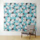 Muster aus Kohlschmetterlingen auf blauem Hintergrund.
